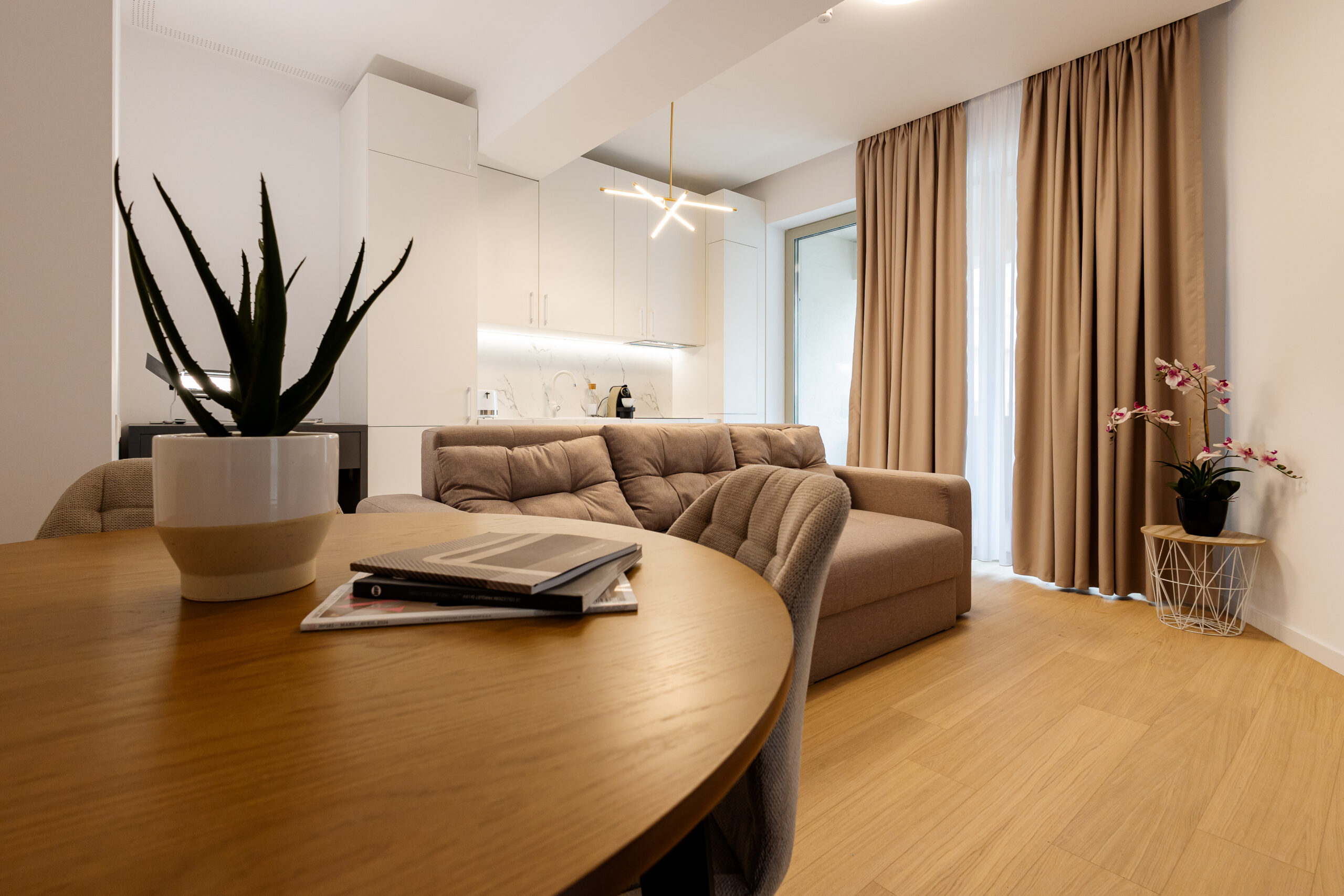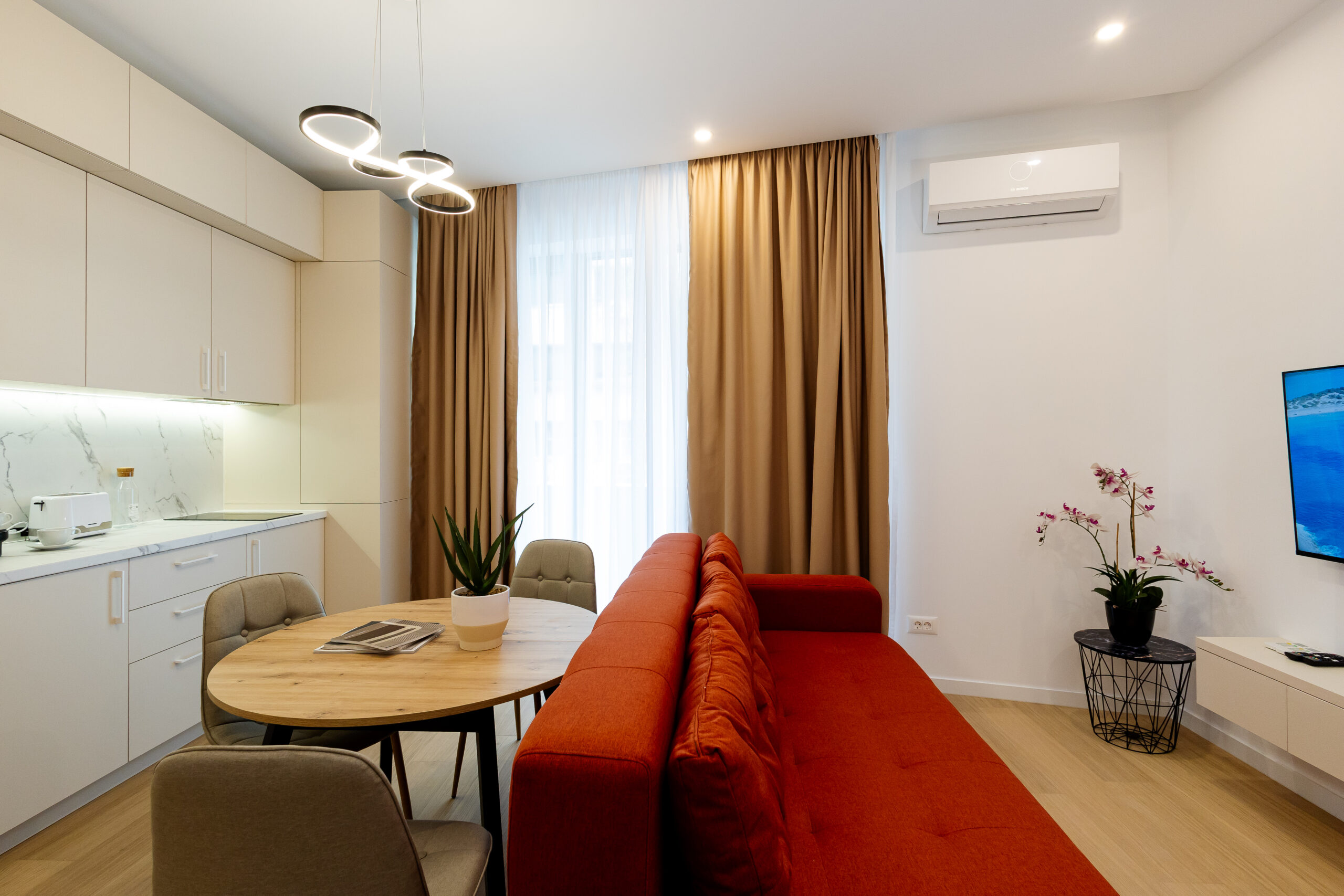 Apartamentele sunt spațioase, cu o înălțime liberă de 2,95 m și ferestre mari. Fiecare unitate este dotată cu televizor smart 4K, ideal pentru relaxare după o zi plină. Iar pentru momentele în care vrei să ieși din apartament, dar să rămâi aproape, restaurantul de la parterul clădirii îți oferă preparate delicioase fără să fie nevoie să părăsești complexul.
